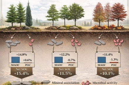 2026-03-17Coniferous Litter Promotes Soil Carbon Stabilization in Subtropical ForestsPlant litter is a major source of soil organic carbon in forest ecosystems, but the influence of litter quality on carbon stabilization remains under debate. A 360-day incubation experiment with twelve subtropical tree species showed that coniferous litter, despite slower decomposition, promoted greater soil carbon accumulation by enhancing mine... Researchers from the South China Botanical Garden of the Chinese Academy of Sciences have uncovered a new mechanism by which tree litter regulates soil carbon stabilization in subtropical forests. Their study shows that, contrary to the conventional view that high-quality litter contributes more effectively to soil carbon accumulation, coniferou...Read More