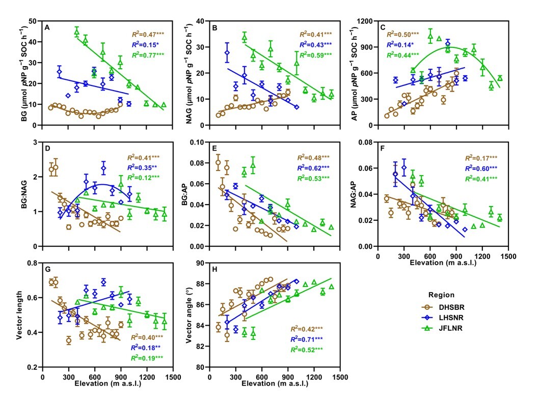 2026-03-17Elevation Aggravates Phosphorus Limitation of Soil Microorganisms in Tropical ForestsAcross tropical forest elevational gradients, soil microorganisms exhibit pervasive phosphorus limitation that intensifies with increasing elevation. Lower temperatures at higher elevations constrain phosphorus release while enhancing microbial investment in P-acquiring enzymes, with important implications for soil carbon cycling under climate c... Researchers from the Ecology and Environmental Science Center of the South China Botanical Garden, Chinese Academy of Sciences, in collaboration with international partners, have demonstrated that soil microorganisms in tropical forests are widely constrained by phosphorus (P) availability, and that this limitation becomes significantly stronger...Read More